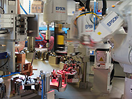 Два робота Epson SCARA G3 и один 6-осевой робот Epson серии C3 выполняют испытание и обработку двух различных литых комплектующих со штампованной решеткой. Робот Epson SCARA G3 точно определяет контакт металла на одном уровне. Одновременно с этим оно проверяет каждую точку измерения на осевое соприкосновение всего лишь за доли секунды. Все измерения проводятся в направлении сверху вниз, поскольку первая литая деталь не имеет функциональных размеров на нижней детали. Параллельно с первым испытанием второй робот Epson SCARA проверяет верхнюю и нижнюю стороны следующей литой детали (радиально и по оси).