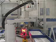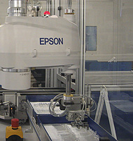 Извлечение стеклянных деталей из сварочной станции с помощью вращающегося захвата и устройства Epson SCARA.