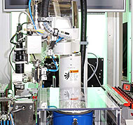 Робот SCARA для стерильных условий оснащен переносной камерой, позволяющей просматривать различные области и корректировать положение механизма. Даже при переменном расположении конечной детали камера дает возможность точно находить необходимые положения для дозирования или захвата. Также на устройстве предусмотрена вторая камера, которая используется для контроля качества: она проверяет место нанесения и количество дозируемого вещества.