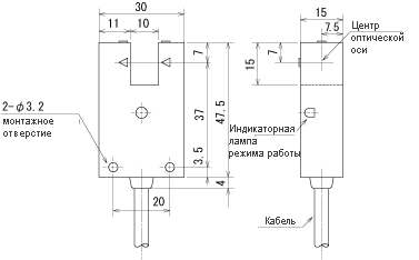 Индикаторная лампа рабочего режима: красный светодиод (горит при попадании света) | |
