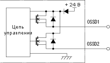Выходы OSSD соответствуют типу выходного сигнала источника.