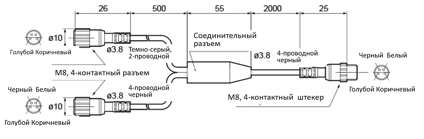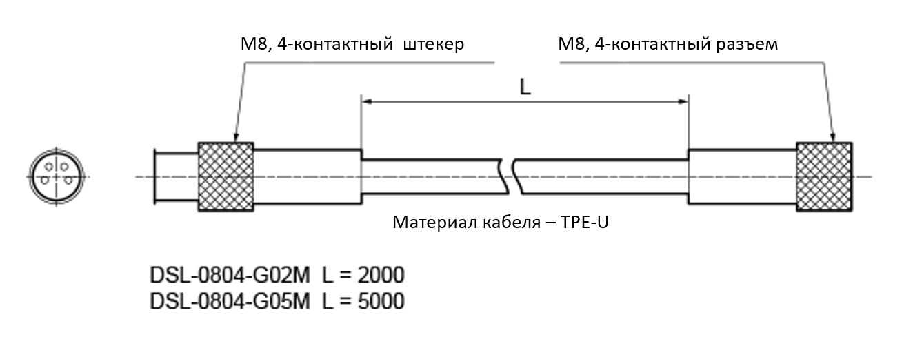 Тип Pig tail: Кабель с M8, 4-контактный разъем, длина 300 мм |