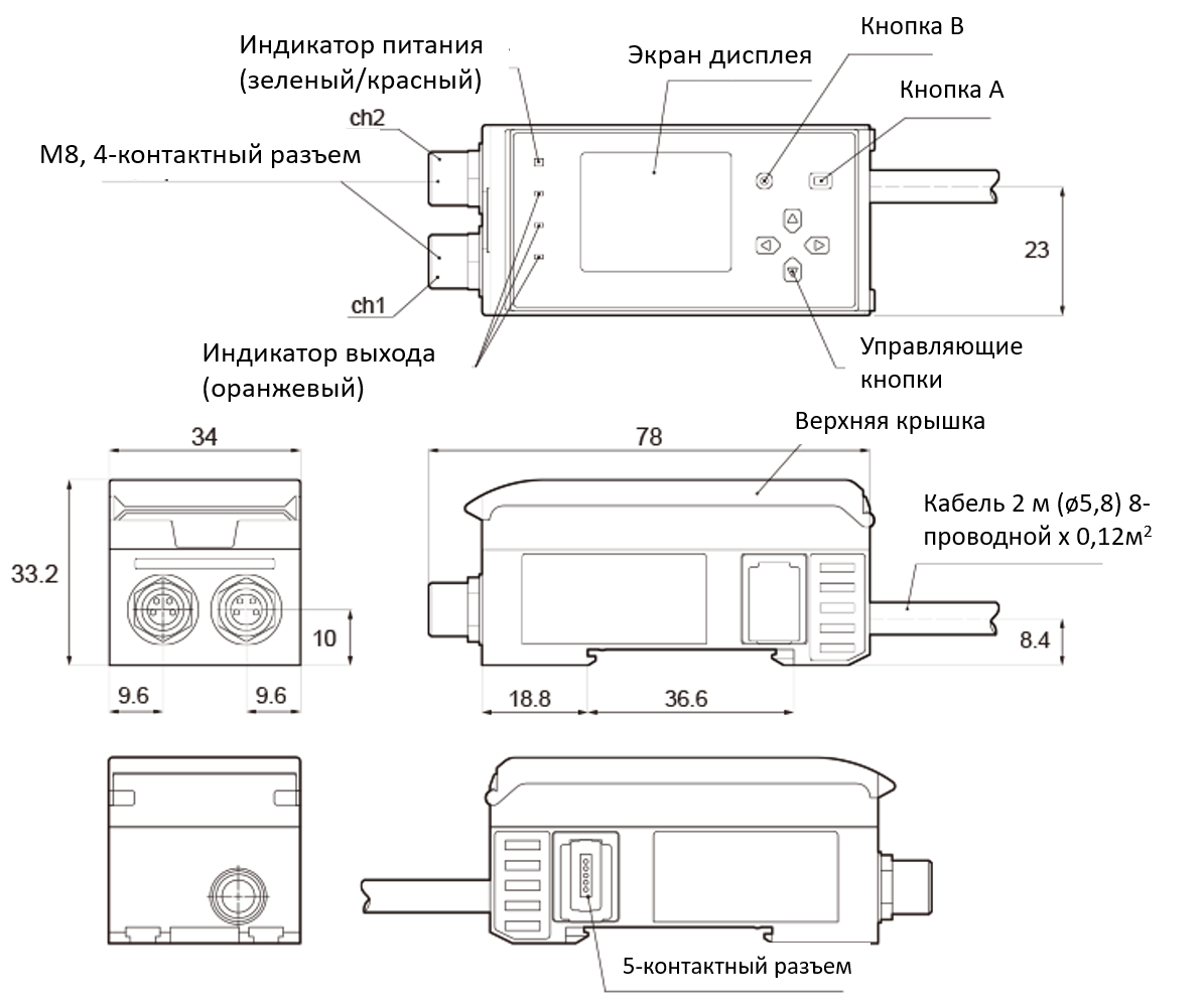 Внешний усилитель может использоваться для расчетов с использованием двух датчиков серии TD1 или подключается к блоку связи CC-Link.