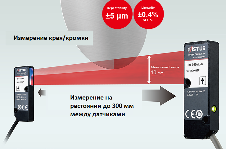Однопроходный датчик положения кромки серии TD1 оснащен светоприемником на базе сенсора CMOS, что позволяет с высокой точностью измерять кромки и торцевые поверхности.