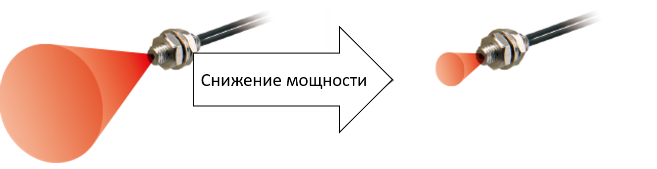 Возможно переключение между тремя уровнями мощности излучаемого света. Поскольку интенсивность принятого света может быть скорректирована за счет уменьшения мощности излучаемого сигнала, эта функция необходима при обнаружении на малых расстояниях и при обнаружении прозрачных или небольших объектов.