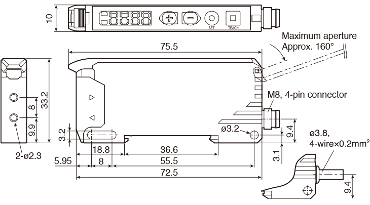 Благодаря защите IP66, нестандартной для оптоволоконных усилителей, датчик можно использовать в составе оборудования, контактирующего с водой