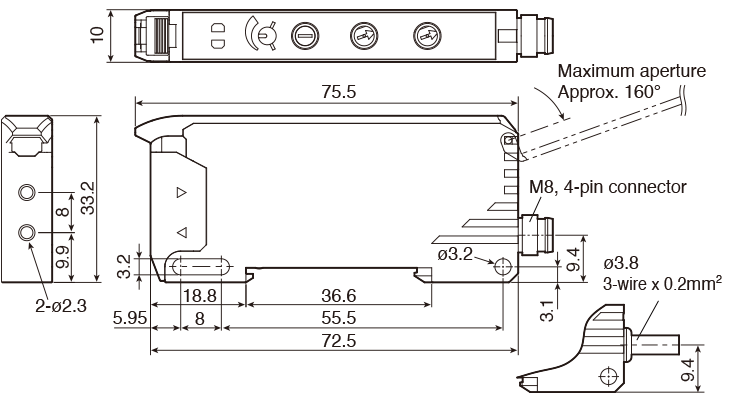 Благодаря защите IP66, нестандартной для оптоволоконных усилителей, датчик можно использовать в составе оборудования, контактирующего с водой.