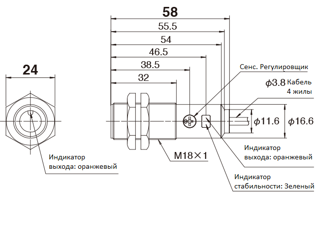 Лучший в своем классе надежный и мощный цилиндрический датчик с резьбой M18