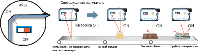 Датчики серии FGS-D могут детектировать тонкие платы, лежащие на конвейер за счет функции подавления переднего плана.