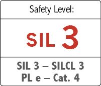 | Уровень безопасности | SIL 3 - SILCL 3 согласно МЭК 61508 - МЭК 62061 / PL e - кат. 4 согласно ISO 13849-1 |