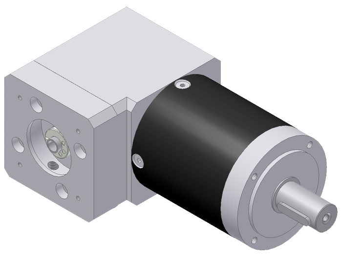 The WPLE 80 is the 90° angle version to the PLE 80. The motor and gear are connected with a detachable coupling and clamping hub. Friction losses cannot be neglected. A bevel gear 1:1 is in front of the PLE 80. The gear backlash increases by an angle part of 6 arcmin.