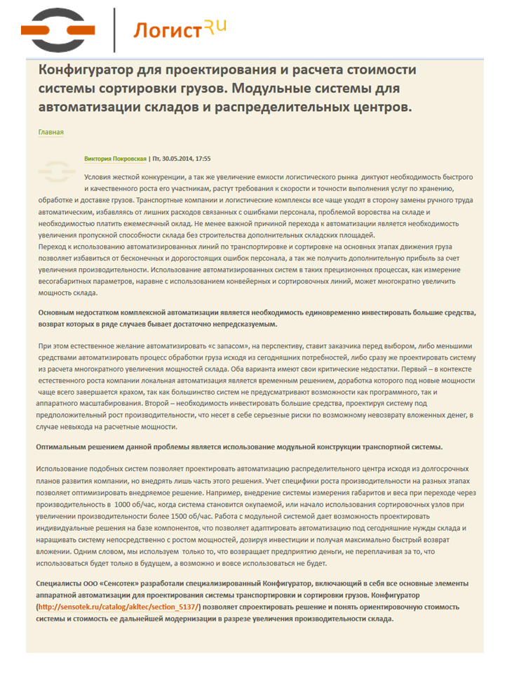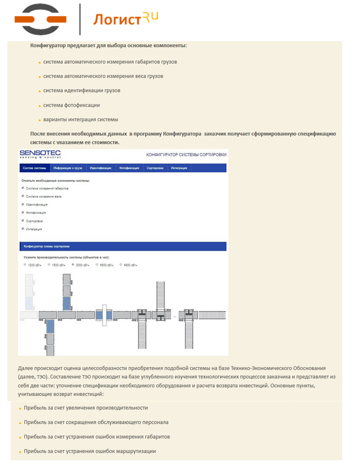 Статья "Конфигуратор для проектирования и расчета стоимости системы сортировки грузов. Модульные системы для автоматизации складов и распределительных центров"